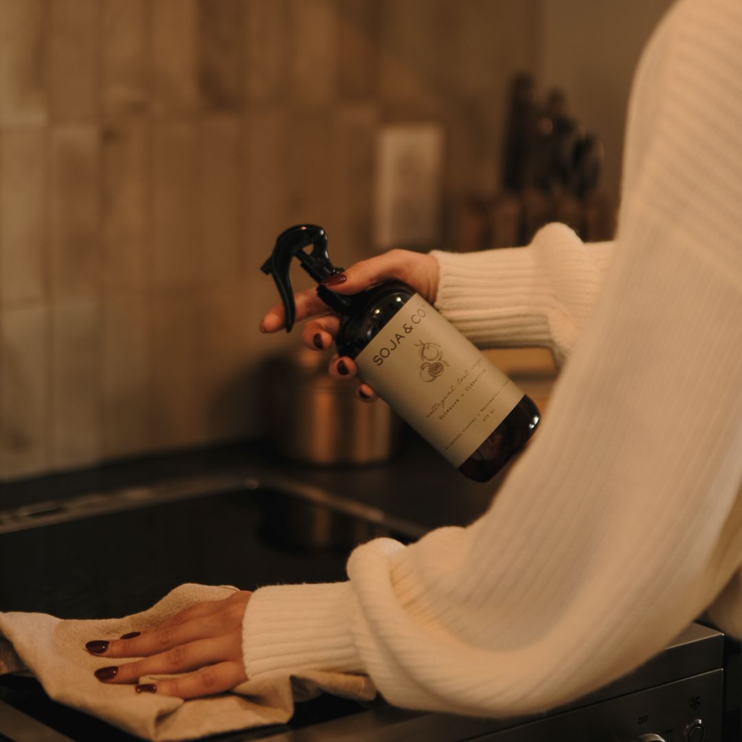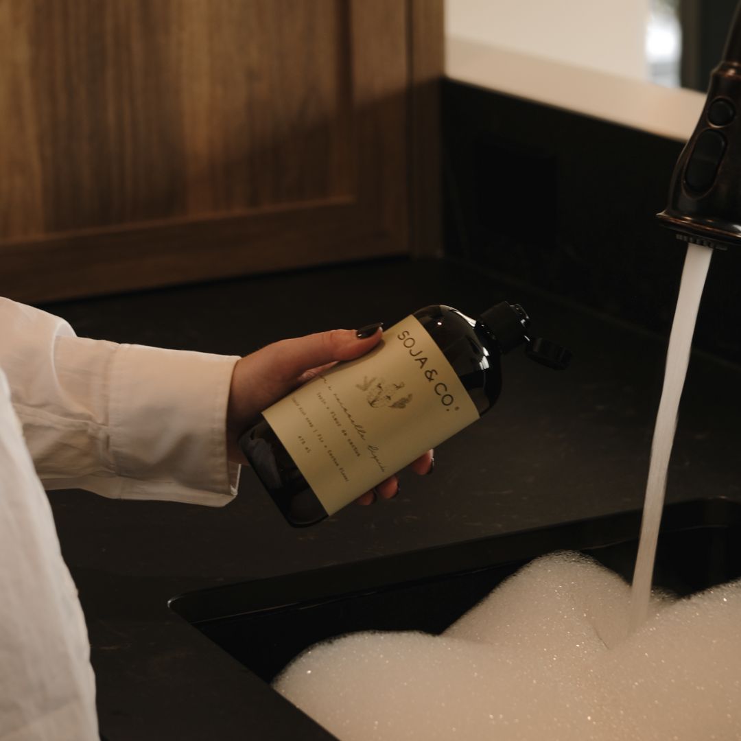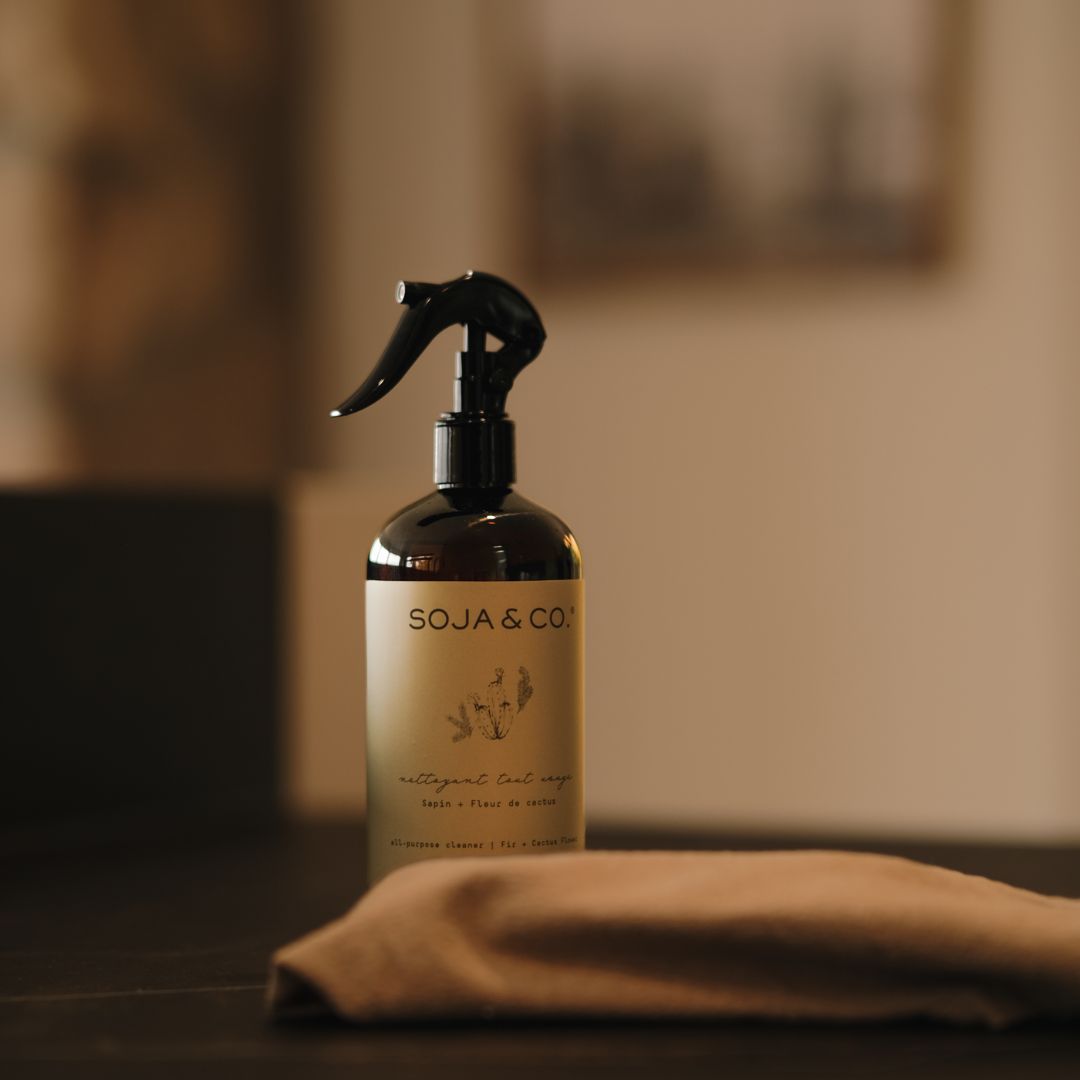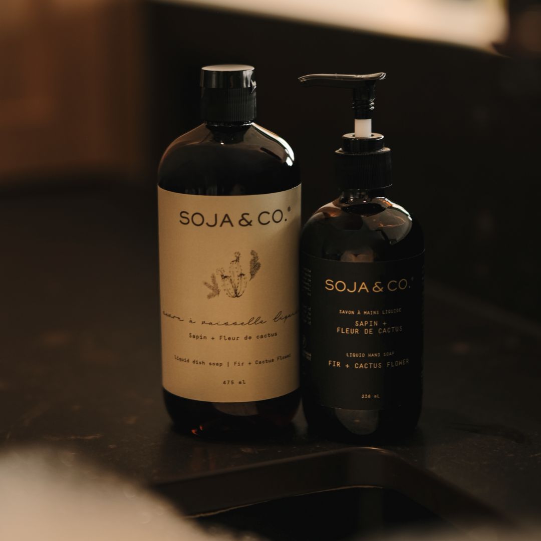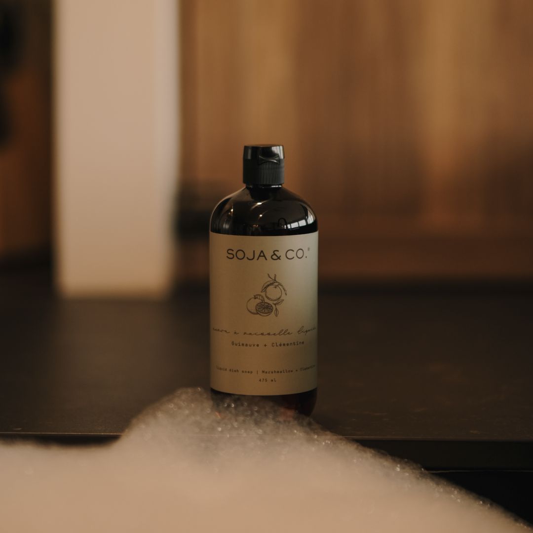 keep your space clean with SOJA&CO household products. our all-purpose cleaners and dish soaps, made in Quebec, are biodegradable and made from natural, toxin-free ingredients. in addition to being environmentally friendly, our vegan fragrances are phthalate-free, providing a healthy and effective solution for maintaining your home.