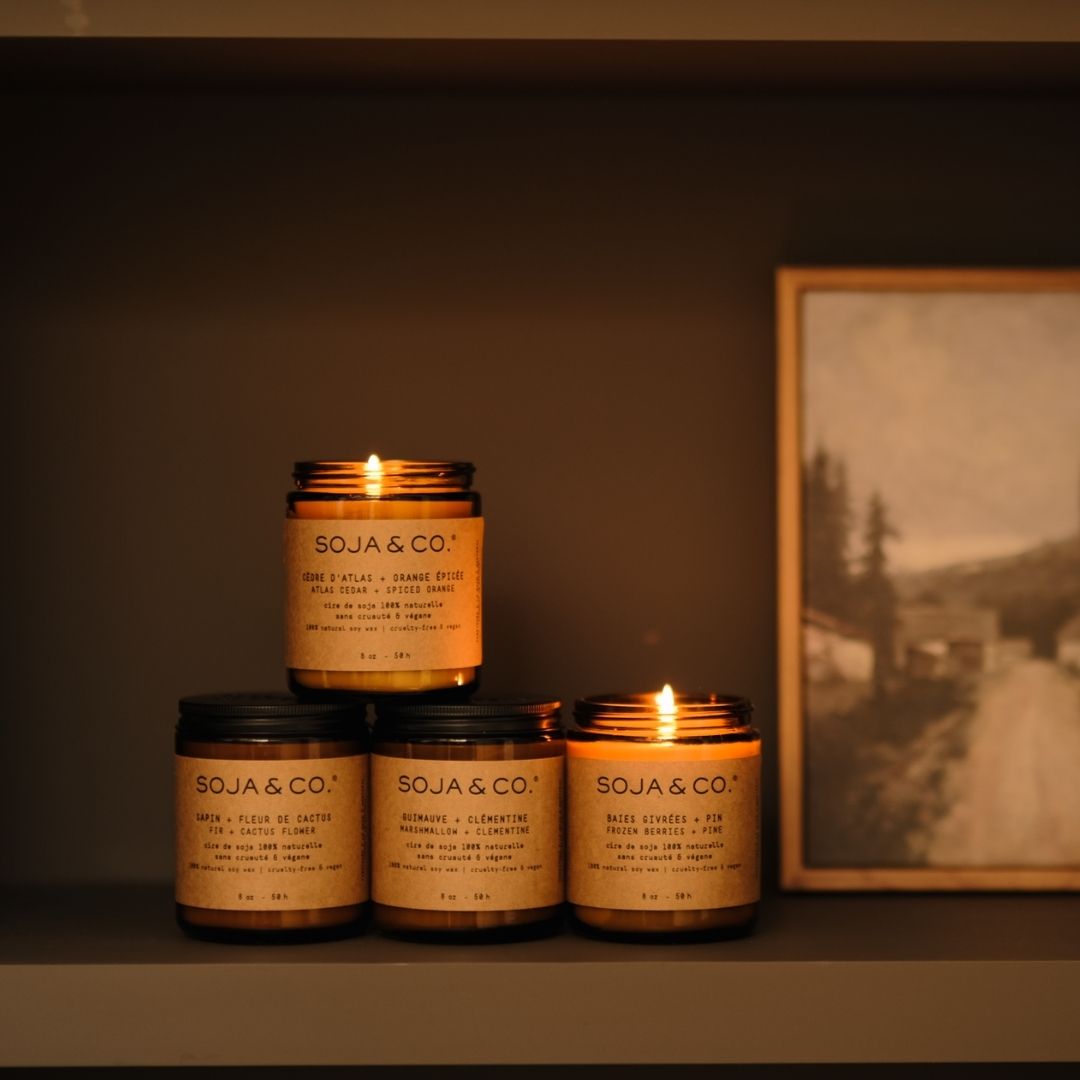 SOJA&CO. candles, made with 100% natural soy wax and phthalate-free vegan fragrances, are hand-poured in Quebec.