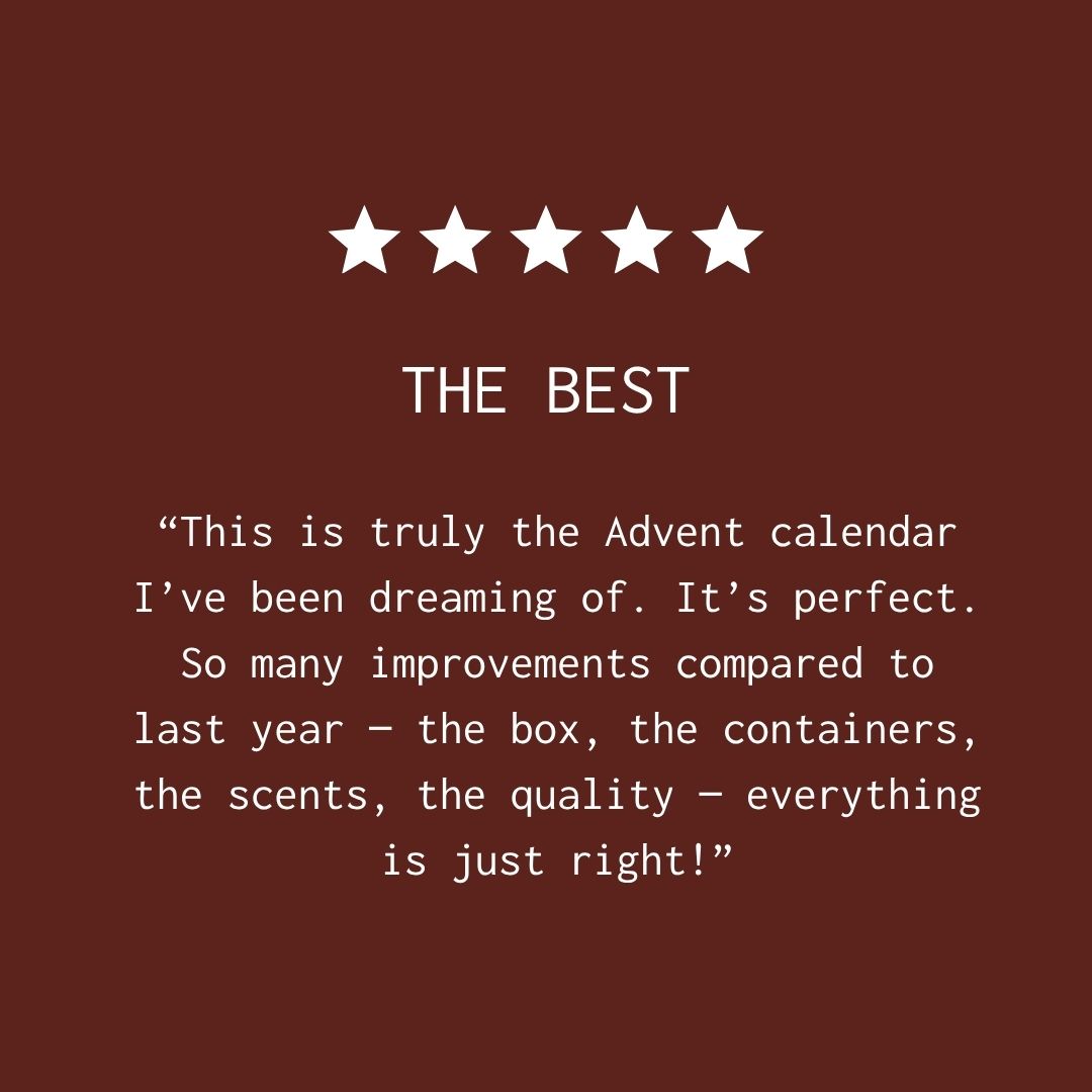 our beloved advent calendar is back for a 4th edition – and it got a glow-up! this year, we gave it a little makeover to bring you even more magic! as always, you’ll find 24 days of scented candles to fill your december with comfort and joy. but to make December 24th extra special, we’ve added something new: a 4 oz candle to light up your Christmas Eve!