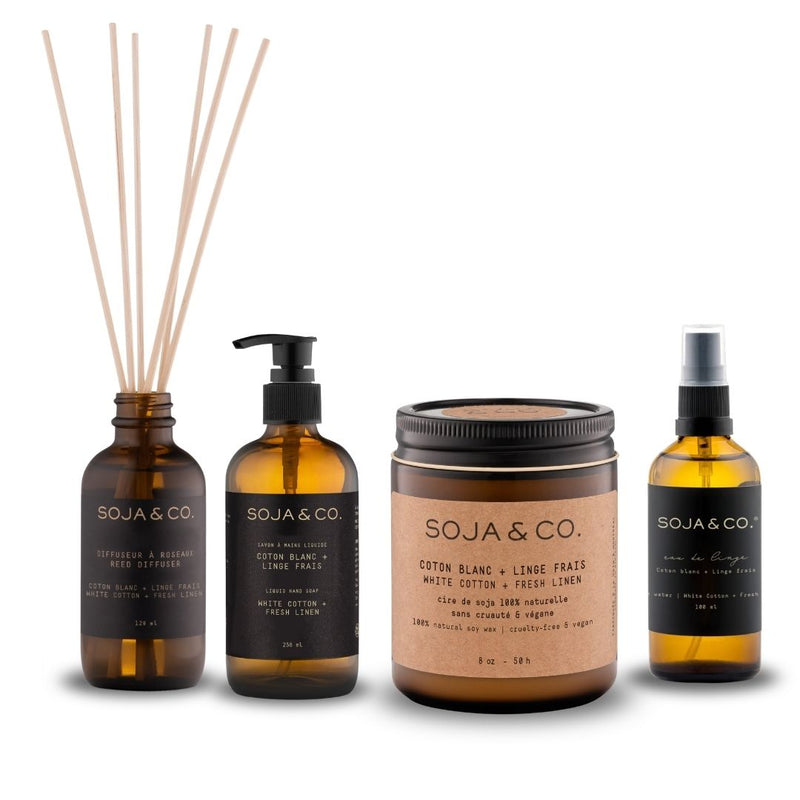 our White Cotton + Fresh Linen Set brings together four essentials around a single fragrance, designed to bring softness and lightness to every room.