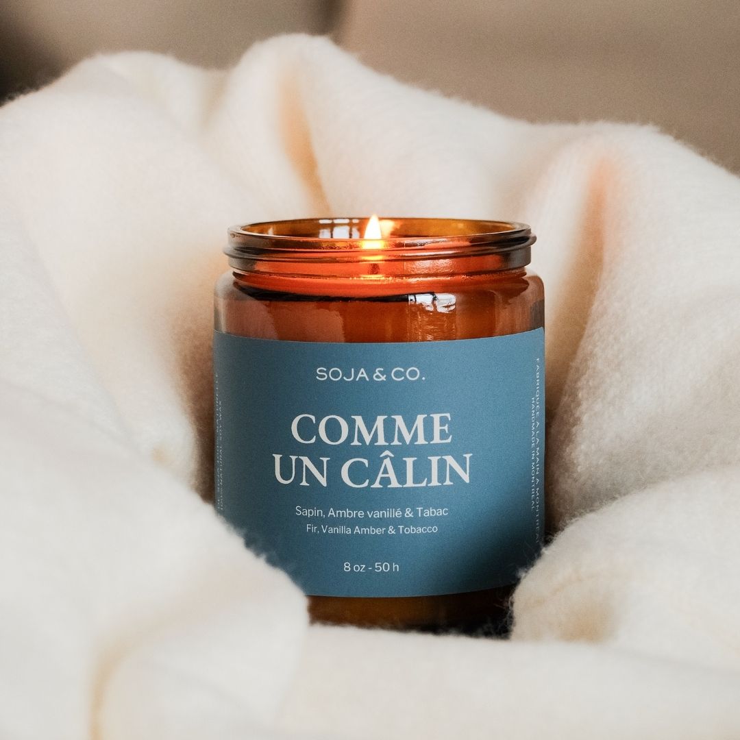 chez SOJA&CO., nous avons choisi de transformer cette journée en une invitation à la douceur. comme un câlin est née de cette intention : créer un refuge olfactif qui enveloppe, apaise et réconforte. à travers des notes ambrées, vanillées et boisées, la fragrance rappelle la chaleur d’une présence rassurante, la sensation d’être entouré de bras aimants