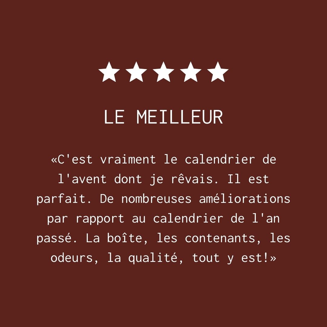 chaque jour révèle une nouvelle bougie, une fragrance à découvrir, à allumer, à savourer. un petit rituel tout doux pour patienter jusqu’au 24 décembre, une pause juste pour vous, ou une expérience unique à offrir. on vous aura prévenus : c’est le cadeau parfait… même si vous risquez de vouloir le garder rien que pour vous ;)