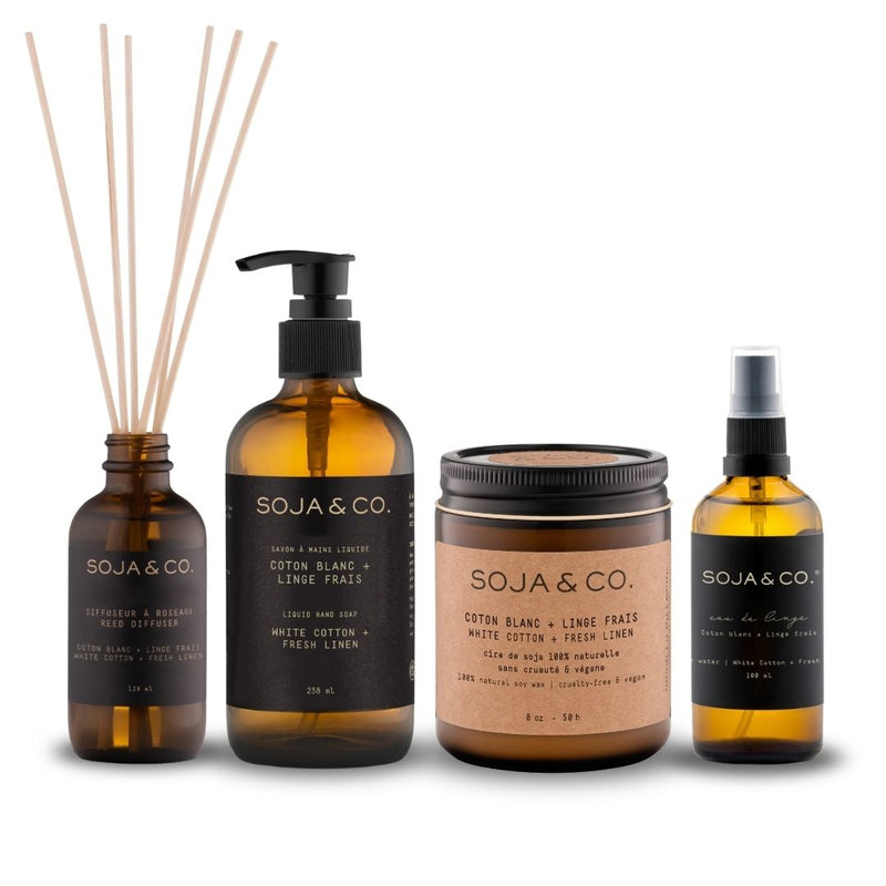 notre Ensemble | Coton blanc + Linge frais réunit quatre essentiels autour d'une même fragrance, pensée pour apporter douceur et légèreté à chaque pièce.